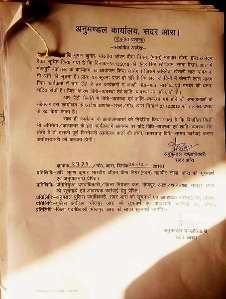 लगातार शिकायत के बाद एक्टिव पुलिस की कार्रवाई ने अश्लील गायकों के मन मे एक डर जरूर पैदा कर रखा था. यहाँ तक कि भोजपुरी के अश्लील गायक खेसारी लाल का प्रोग्राम तक प्रशासन ने रद्द कर दिया था.