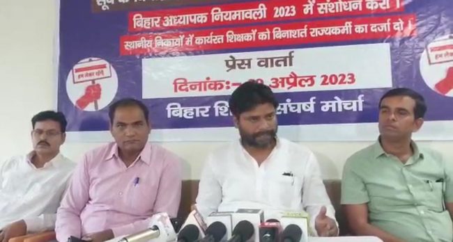 मोर्चा के संरक्षक एवं पालीगंज विधानसभा के विधायक संदीप सौरभ ने बताया कि बिहार के मुख्यमंत्री से मिलकर उन्हें पहले ही स्थिति से अवगत करा दिया गया है साथ ही हमने उन्हे केरल एवं दिल्ली के भांति रेगुलर प्रशिक्षण के माध्यम से शिक्षकों के स्किल डेवलपमेंट करने का सुझाव प्रस्तुत किया है एवं उनके समक्ष बिना शर्त सभी नियोजित शिक्षकों को नई नियमावली में समाहित करने की मांग किए हैं संदीप सौरव ने बताया कि वामपंथी दलों के साथ हमने बैठक करके भी एकराय बना लिया है की यह नियमावली चार लाख शिक्षकों के हित में नहीं है तथा इसमें से परीक्षा वाली शर्तों को हटाया जाना चाहिए इतना ही नहीं आगे भी हम अन्य पार्टियां यथा हिंदुस्तानी आवाम मोर्चा, कांग्रेस राजद एवं जदयू के भी नेताओ से मिलकर इसपर चर्चा की जाएगी एवं उनका समर्थन लिया जाएगा. आगे 1 मई को बिहार के सभी शिक्षक मजदूर दिवस मनाते हुए संकल्प लेंगे तथा 5 मई को पटना में शिक्षक महासम्मेलन का आयोजन किया जाएगा.