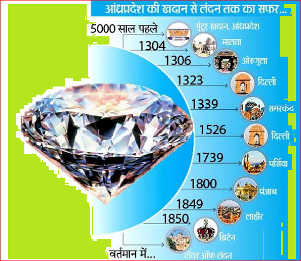 कोहिनूर को दुनिया का सबसे मशहूर हीरा कहा जाता है. यह मूल रूप से आंध्र प्रदेश के गोलकोंडा खनन क्षेत्र में निकला था. पहले यह 793 कैरेट का था लेकिन अब 105.6 कैरेट का ही रह गया है. इसका वजन 21.6 ग्राम है. यह कई राजाओं से होता हुआ ब्रिटेन की महारानी तक पहुंचा है. कोहिनूर 1304 के आसपास मालवा के राजा महलाक देव की संपत्ति का हिस्सा था. 1526 में पानीपत का युद्ध जीतने के बाद कोहिनूर पर बाबर का कब्जा हो गया. तब 186 कैरेट के रहे हीरे को बाबर हीरा कहा जाने लगा. इसके बाद 1739 में ईरानी शासक नादिर शाह ने दिल्ली के शासक मोहम्मद शाह को हरा दिया. उसने शाही खजाने को लूट लिया, जिसमें बाबर हीरा भी था.