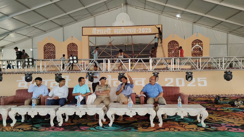 पटना।। पर्यटन विभाग द्वारा आयोजित तीन दिवसीय वैशाली महोत्सव का शुभारंभ गुरुवार से हो रहा है. तीन दिवसीय वैशाली महोत्सव का उद्घाटन उप-मुख्यमंत्री सम्राट चौधरी करेंगे. महोत्सव में पर्यटन मंत्री राजू कुमार सिंह उद्घाटन समारोह की अध्यक्षता करेंगे. इस मौके पर मुख्य अतिथि बिजेंद्र प्रसाद यादव होंगे जबकि स्थानीय सांसदगण चिराग पासवान, नित्यानंद राय, मोतीलाल प्रसाद, वीणा देवी, उपेंद्र कुशवाहा सहित स्थानीय जनप्रतिनिधिगण उपस्थित रहेंगे.