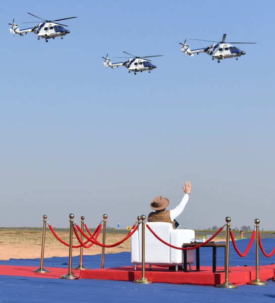 लाइट कॉम्बैट हेलीकॉप्टर ‘प्रचंड’ ने एयरो इंडिया शो में एरोबेटिक प्रदर्शन किया