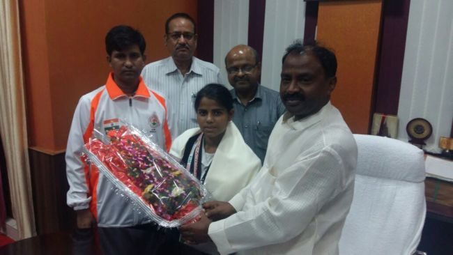 वर्ल्‍ड रेसलिंग चैंपियनशिप की स्‍वर्ण पदक विजेता सफीना परवीन सम्‍मानित