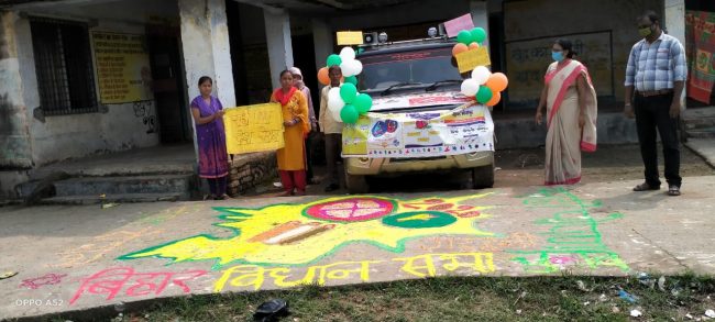 जागरूकता रथ के माध्यम से समाज मे कुपोषित बच्चों के प्रति जानकारियां देने को लेकर जागरूकता अभियान चलाया जा रहा है साथ ही आगामी विधानसभा चुनाव 2020 मे स्वीप कार्यक्रम के तहत लोगों को मतदान के प्रति जागरूक किया जा रहा है. स्वीप कार्यक्रम के तहत यह रथ प्रखंड क्षेत्र के सभी गांव-गांव जाकर लोगों को मतदान के लिए जागरूक करेगा.