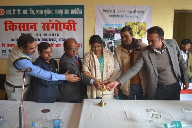 फुलवारी शरीफ. गोनपुरा पंचायत की मुखिया आभा देवी ने कहा की किसानो की उन्नति के बगैर देश का विकास नही हो सकता है .उन्होंने कहा की किसान कृषि में नए प्रयोग करें, नए उपकरणों का सहारा ले तथा इसके लिए बैंक से ऋण लेकर तरक्की करें । शुक्रवार को मुखिया अभ देवी किसान संगोष्ठी में बोल रही थी . आईडीबीआई बैंक ने किसान दिवस के उपलक्ष्य में गोनपुरा पंचायत के किसानो की एक किसान संगोष्ठी का आयोजित की थी । संगोष्ठी का उद्घाटन गोंनपूरा पंचायत की मुखिया आभा देवी ने बैक अधिकारियो के साथ संयुक्त रूप से द्वीप जलाकर किया . आईडीबीआई बैक के महाप्रबंधक मनोज कुमार ने कहा की पूर्व प्रधानमंत्री स्व. चौधरी चरण सिंह किसानो के दशा सुधारने के लिए कई योजनायें चलायी थी . उन्होंने बैंक की योजनाओं का लाभ किसानों तक पहुंचाने के लिए उन्हें जागरूक करने की वकालत की .उन्होंने किसानों को बैंक से जुड़ने तथा विभिन्न योजनाओं का लाभ उठाकर अपना देश का विकास करने की बात कही । मुखिया पति राजद नेता राम अयोध्या शर्मा ने कहा की देश में किसानों की जनसंख्या 80 प्रतिशत है मगर देश की जीडीपी में कृषि का योगदान 20 प्रतिशत है । इस स्थिति में सुधार के लिए किसानो भाईयो को जागरूक होना होगा .कार्यक्रम में कृषि वैज्ञानिकों ने किसानो को कम लागत में ज्यादा मुनाफा के गुर किसानो से साझा किये . इस मौके पर ब्रिजल कुमार , प्रबंधक , क्षेत्रीय कार्यालय , मो इरफ़ान आजम खान , शाखा प्रमुख ,आलू शोध संसथान , पटना के कृषि वैज्ञानिक अरुण कुमार ,आईसीआईसीएआर के कृषि वैज्ञानिक डॉ अनील और डॉ पंकज ,अभिषेक कुमार , सहायक प्रबंधक एवं सुधीर कुमार समेत बड़ी संख्या में किसान भाई मौजूद रहे .