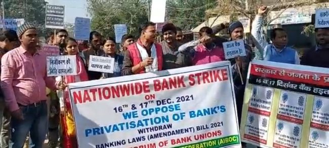 निजी करण के खिलाफ यूनाइटेड फोरम आफ बैंक यूनियंस ने 3 दिसंबर से आंदोलन की शुरुआत कर रखी है और 16 व 17 दिसंबर को दो दिवस की देशव्यापी हड़ताल पर चले गए है. इस आशय की जानकारी देते हुए बैंक एसो.के उप महासचिव संजय तिवारी ने बताया कि सरकार की नीतियों के खिलाफ आज पूरे देश में हड़ताल और प्रदर्शन किया जा रहा है. संजय तिवारी ने कहा कि दो दिनों के हड़ताल के बाद शनिवार और रविवार को छुट्टी है इस लिए अब बैंक सोमवार को ही खुलेंगे.आपको बता दें कि ऑल इंडिया बैंक ऑफिसर्स कनफेडरेशन (एआईबीओसी) के महासचिव सौम्य दत्ता ने कहा कि बुधवार को अतिरिक्त मुख्य श्रम आयुक्त के समक्ष सुलह-सफाई बैठक विफल रही और यूनियनों ने हड़ताल पर जाने के फैसले को कायम रखा है. राष्ट्रव्यापी एक दिवसीय बैंक हड़ताल का पटना सहित पूरे बिहार में व्यापक असर देखा जा रहा है। बिहार की 6775 बैंक शाखाएं और 6690 एटीएम भी इस हड़ताल से प्रभावित हैं . पटना के बैंकों में भी हड़ताल का प्रभाव देखने को मिल रहा है, बैंक कर्मचारी सरकार विरोधी नारे लगा रहे हैं और बंद बैंकों के बाहर धरने पर बैठे हैं.बिहार प्रोविंसियल बैंक इम्पलाइज एसोसिएशन के उप महासचिव सचिव संजय तिवारी हड़तालियों के साथ पटना में मौजूद हैं.