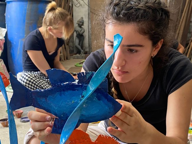 कार्यशाला के दौरान दुनिया भर से आए लोगों ने सेंटर ऑफ रेसिलियंस के फ्लोटिंग हाउस प्रोजेक्ट पर काम किया. विद्यार्थियों ने पुराने पद्धतियों को प्रयोग करते हुए बांस का घर बनाना सीखा. उसके साथ ही गोबर, मिट्टी और चुने से वैदिक ब्रिक (ईंट) का प्रोटोटाइप बनाना भी सीखा.