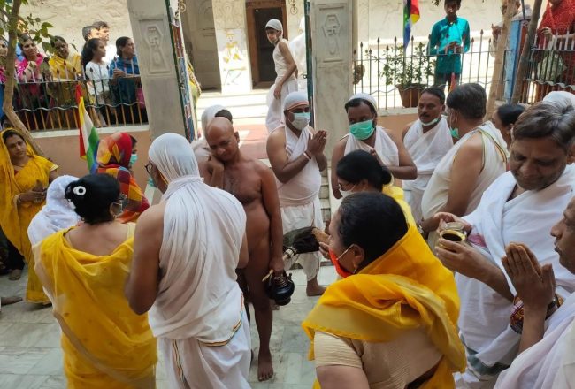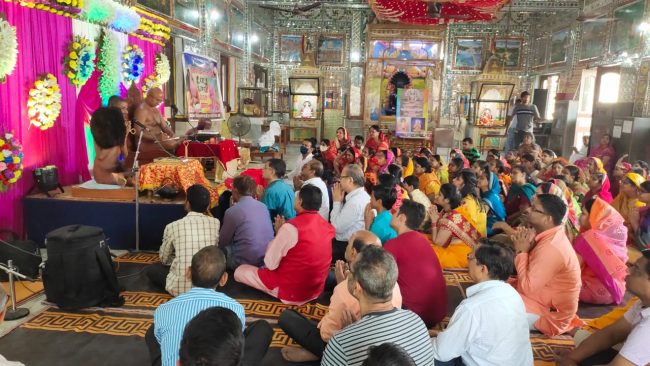 प्रातः समय बामपाली स्थित ज्ञान ज्योति आवासीय विद्यालय में जिनेन्द्र प्रभु का अभिषेक, पूजन एवं शांतिधारा संपन्न हुआ. आचार्य ससंघ का नगर आरा स्थित श्री 1008 अतिशयकारी चन्द्रप्रभु दिगम्बर जैन मंदिर के लिए मंगल विहार हुआ. जैन समाज के लोगों ने आचार्य ससंघ का भव्य आगवानी किया. शहर के चंदवा मोड़ से लेकर जेल रोड स्थित जैन मंदिर तक भक्तों ने गाजा-बाजा के साथ भव्य जुलूस निकाला गया. जुलूस में भक्तों ने जैन ध्वज लहराते, गुरुदेव का जयकारा लगाते, पुष्पवृष्टि करते हुये जैन मंदिर पहुँचे. वहीं आचार्य ससंघ का पाद-प्रक्षालन, मंगल आरती एवं भजन एवं धर्मसभा का आयोजन हुआ. उन्होंने धर्मसभा में भक्तों से कहा कि आरा बहुत ही पवित्र भूमि है यहां भगवान पार्श्वनाथ एवं भगवान महावीर के साथ अनेकों आचार्य एवं गुरुओं की विश्राम स्थली है, उन्होंने कहा कि आप सभी बहुत ही सौभाग्यशाली है कि इतने पवित्र भूमि परते है.