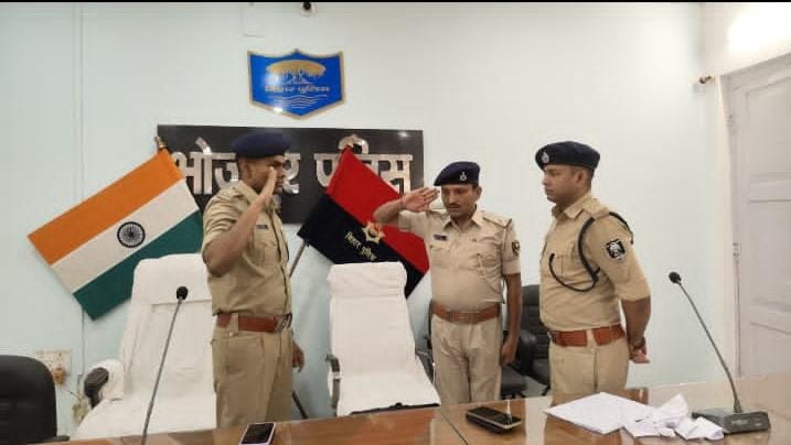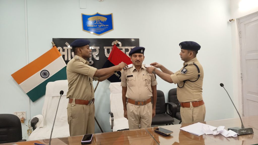 आरा (भोजपुर), 18 मई. बिहार पुलिस मुख्यालय (कार्मिक एवं कल्याण प्रभाग) के आदेश के आलोक में सोमवार को भोजपुर पुलिस लाइन में आयोजित समारोह में 39 पी.टी.सी. सिपाहियों को पदोन्नत कर सहायक अवर निरीक्षक (ASI) का बैज पहनाया गया। पुलिस अधीक्षक भोजपुर राजेश कुमार तथा सहायक पुलिस अधीक्षक प्रियंका कुमारी ने नव-पदोन्नत अधिकारियों को बैज लगाकर सम्मानित किया और उनके उज्ज्वल भविष्य की कामना की।