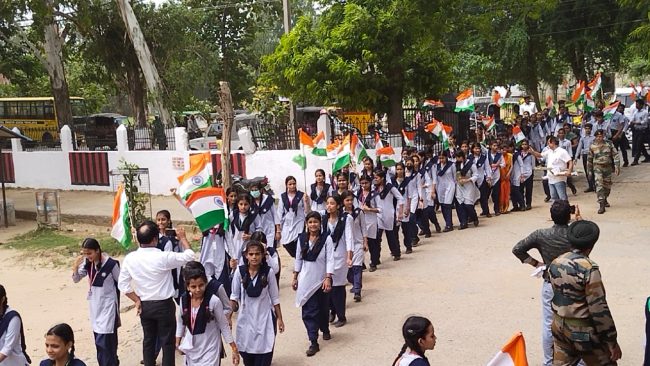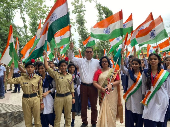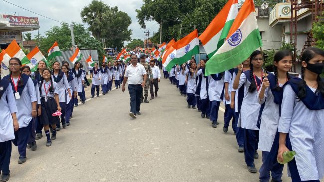 तत्पश्चात विद्यालय के प्रबंध निदेशक डॉ. कुमार द्विजेंद्र ने प्राचार्या डॉ. अर्चना सिंह को तिरंगा प्रदान कर यात्रा की शुरुआत की. विद्यालय के लगभग 500 छात्र-छात्राओं ने हाथ में तिरंगा लहराते हुए प्राचार्य डॉ. अर्चना सिंह के नेतृत्व में विद्यालय परिसर से तिरंगा यात्रा की शुरुआत की. विद्यालय के छात्र-छात्राएं एनसीसी कैडेट्स एवं शिक्षक ‘भारत माता की जय’, ‘वंदे मातरम’ का नारा लगाते हुए पुरानी पुलिस लाइन से कलेक्ट्रेट होते हुए वीर कुँअर सिंह मैदान के मुख्य मंच तक पहुंचे. वीर कुँवर सिंह मैदान मे प्राचार्या डॉ. अर्चना सिंह ने तिरंगा यात्रा में शामिल छात्र-छात्राओं शिक्षकों को संबोधित किया.