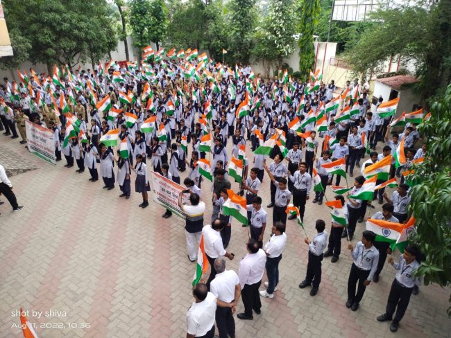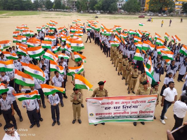 आरा।। शहर के शुभ नारायण नगर मझौंवा स्थित “शांति स्मृति “संभावना आवासीय उच्च विद्यालय में आजादी के अमृत महोत्सव के अवसर पर “हर घर तिरंगा अभियान” के तहत भव्य समारोह का आयोजन किया गया. समारोह की शुरुआत विद्यालय परिसर में हाथ में तिरंगा लहराए छात्र-छात्राओं के बीच “वंदे मातरम्” गान से हुआ.