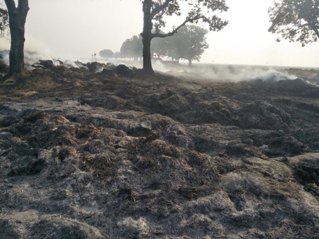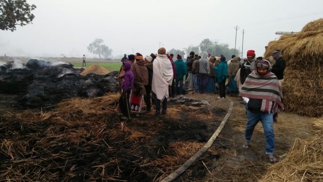 खलिहान में लगी आग, हजारों बोझा धान जलकर राख