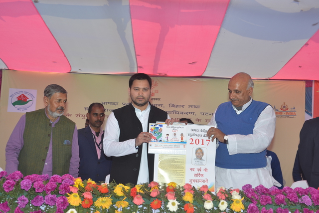 कार्यक्रम के दौरान बिहार राज्य आपदा प्रबंधन प्राधिकरण द्वारा तैयार किया गया (दीवाल एवं टेबल) आपदा जोखिम न्यूनीकरण कैलेंडर 2017 माननीय मंत्री आपदा प्रबंधन द्वारा माननीय उप मुख्य-मंत्री को भेंट किया गया.
