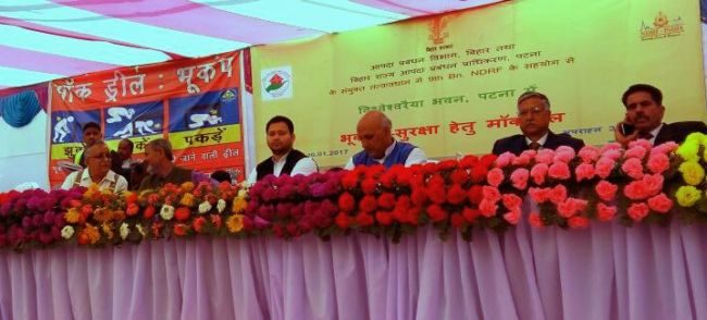 बिहार राज्य आपदा प्रबंधन प्राधिकरण के उपाध्यक्ष व्यास जी ने कहा कि मॉक ड्रिल की महत्ता को समझना जरूरी है, भूकम्प जैसी प्राकृतिक आपदा में कोई early warning system कार्य नहीं करते हैं अतः झुको , ढको  और पकड़ो का निरंतर अभ्यास किया जाना चाहिए. उन्होने प्राधिकरण द्वारा जारी 2017 के आपदा जोखिम न्यूनीकरण कैलेंडर के महत्व को बताते हुए कहा कि इसका उपयोग स्कूलों के बच्चों के माध्यम से किया जाएगा . उन्होनें कहा की सभी लोग अपने अपने घरों में भी भूकंप सुरक्षा के उपायों को बतायें. प्राधिकरण के सदस्य डॉ. उदय कांत मिश्र ने कुछ महत्वपूर्ण उदाहरणों एवं उद्धरणों के माध्यम से ये बताया की किस प्रकार पूर्व में आपदा के समय “क्या करें – क्या न करें” की जानकारी रखने वालों ने न केवल अपनी जान बचायी बल्कि अन्य हज़ारों लोगों की जान भी बचायी.