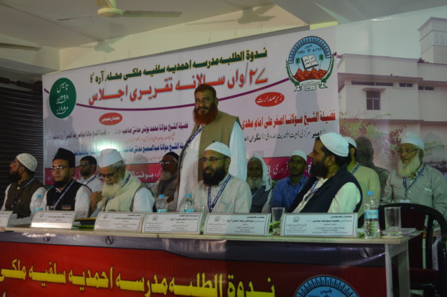 मौलाना अबू नासिर रजाउल हसन आरवी रईस मदरसा अहमदिया सलफिया आरा ने जलसा में प्रस्तुत सभी बंधुओं को मुबारकबाद दिया और शिक्षा की रौशनी फैलाने वाले इस मदरसा को दान करने के लिए प्रेरित किया. मौलाना यूनुस मदनी साहब ने कहा कि मदरसा अहमदिया सलफिया,आरा को बनाने वाले हाफिज़ अबुमाहम्मद इब्राहीम आरवी इसी शहर से उठे और इस्लाम धर्म की शिक्षा फैलाने के लिए कमर बस्ता हुए. आज उसी परिश्रम का नतीजा है कि मदरसा तरक्की कर रहा है. आरा से ही शिक्षा की अलख जगी जो बनारस तक गई.