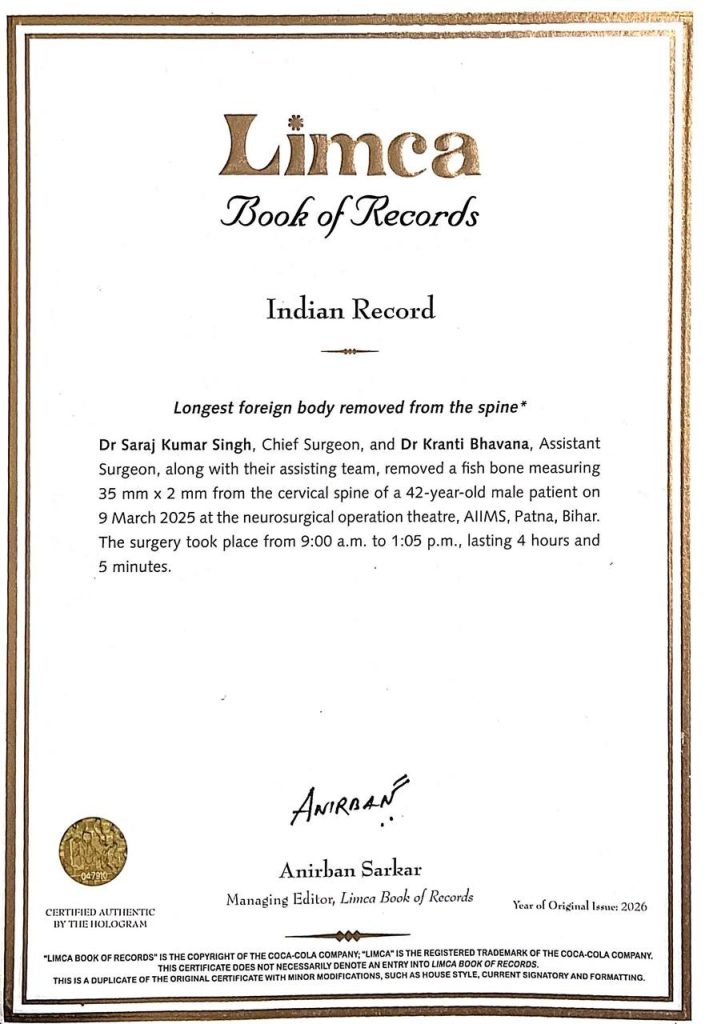 इस असाधारण सर्जरी को अब लिम्का बुक ऑफ रिकॉर्ड्स 2026 में भी स्थान मिला है, जिससे यह उपलब्धि राष्ट्रीय स्तर पर दर्ज हो गई है.