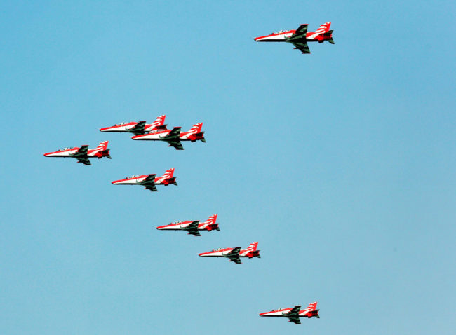 वायुसेना दिवस के मौके पर हिंडन एयरबेस पर लड़ाकू विमानों ने आसमान ने एक से बढ़कर एक करतब दिखाए.