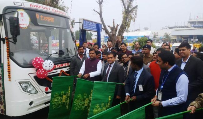 पटना (ब्यूरो रिपोर्ट) | बिहार राज्य पथ परिवहन निगम द्वारा पटना एयरपोर्ट से गुरुवार को एयरपोर्ट एक्सप्रेस बस सेवा शुरू की गई. नई बस सेवा का फ्लैग ऑफ परिवहन मंत्री संतोष कुमार निराला और परिवहन सचिव संजय कुमार अग्रवाल ने किया. एयरपोर्ट से दो मार्गों पर हर दिन बसों का परिचालन किया जाएगा. परिवहन विभाग मंत्री संतोष कुमार निराला ने कहा कि बिहार में परिवहन सेवा की स्थिति बेहतर हुई है. देश-विदेश से पटना एयरपोर्ट पर उतरने वाले यात्रियों को परिवहन निगम की बसों से उनके गंतव्य पर पहुंचाया जायेगा. इस मौके पर एयरपोर्ट डायरेक्टर आरएस लाहौरिया, इंडिगो एयरलाइंस के स्टेशन प्रबंधक रूपेश आदि उपस्थित थे.