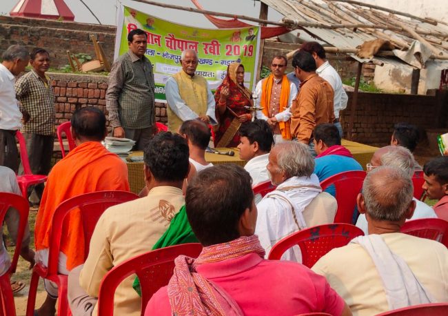 कृषि विभाग द्वारा किसानों को बीज 100% अनुदान पर उपलब्ध कराया जा रहा है. सरकार किसानों के खाते में अनुदान की राशि सीधे डीवीटी के माध्यम से भेज रही है. किसान जैविक खेती की ओर भी कदम बढ़ाए इससे पर्यावरण के प्रदूषण होने से भी बचाव होगा. रसायनिक खाद से खेत की उर्वरा शक्ति छीन होता जा रहा है जैविक खेती के साथ-साथ हम खेती में नई तकनीक के जिले जीरो टिलेज ड्रिप सिंचाई तकनीक श्री विधि आदि का उपयोग कर ज्यादा पैदावार हासिल करें ज्यादा पैदावार हासिल कर सकते हैं. सरकार के द्वारा चलाई जा रही योजनाएं बीज ग्राम अनुदानित दर पर बीज की उपलब्धता मुख्यमंत्री तीव्र बीज विस्तार योजना बागवानी आदि का लाभ किसान लेकर अपनी आय दोगुना आसानी से कर सकते हैं. नीलगाय से फसलों की बर्बादी रोकने के लिए बेस्ट डिकमोजार का उपयोग कर नीलगाय द्वारा फसल की क्षति से निजात पा सकते हैं. किसान सलाहकार निजामुद्दीन अंसारी ने खेतों में फसल अवशेष न जलाने का अनुरोध किसानों से किया. उन्होंने सरकार के द्वारा चलाए जा रहे सभी योजनाओं प्रधानमंत्री किसान सम्मान निधि योजना कृषि यंत्रीकरण योजना कृषि इनपुट अनुदान योजना की जानकारी दी. किसानों को विभाग के साथ सहभागी बन कर नई कृषि योजनाओं का लाभ उठाने का आग्रह किया. इस मौके पर गाँव के ग्रामीण किसानों ने चौपाल मे भाग लेकर जानकारी हासिल की.