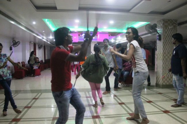 वैसे जिनको समय नही पाया था वो आज अपनी ख़रीदारी डाँडिया की कार्यशाला में प्रैक्टिस के बाद पूरे कॉन्फिडेंस से बाजार में कपड़े ढूंढ कर अपने लिए लाएंगे. विशेष आकर्षण यह है कि इस आयोजन में दिल्ली, पटना और सासाराम से भी कुछ लोग आ रहे हैं.