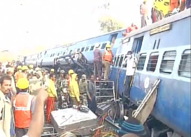 आंध्र प्रदेश के विजयनगरम जिले के कुनेरू स्टेशन के पास जगदलपुर-भुवनेश्वर हीराखंड एक्सप्रेस का इंजन और 7 डिब्बे पटरी से उतर गए. इस हादसे में अब तक 32 लोगों के मरने की खबर है. वहीं, 100 लोग जख्मी हो गए. हादसा शनिवार रात 11 बजे हुआ.घटनास्थल पर रेस्क्यू काम का जारी है. यह ट्रेन जगदलपुर से भुवनेश्वर जा रही थी. रेल मंत्री सुरेश प्रभु और रेलवे बोर्ड के चैयरमैन मौके पर पहुंच रहे हैं. इस घटना के पीछे पटरियों से छेड़छाड़ की आशंका व्यक्त की जा रही है,घटना को लेकर देश के प्रधानमंत्री नरेन्द्र मोदी और गृहमंत्री राजनाथ सिंह ने ट्वीट कर संवेदना व्यकत की है. इसके अलावा कांग्रेस की राष्ट्रीय अध्यक्ष सोनिया गांधी और आंध्र प्रदेश के मुख्यमंत्री चंद्रबाबू नायडु ने भी हादसे पर अपना दुख व्यक्त किया है. पटरी से उतरे डिब्बों में 4 स्लीपर, दो एसी, दो पैसेंजर और 1 लगेज के डिब्बे थे.