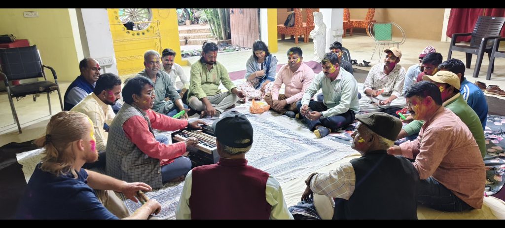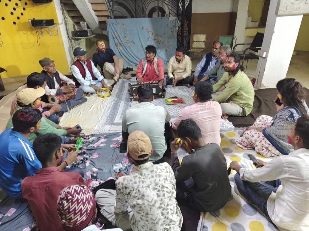 कार्यक्रम की शुरुआत पारंपरिक फाग गीतों से हुई और देखते ही देखते पूरा परिसर रंगमय हो उठा। राजा बसंत बहार, मनोज मीत यादव, पारले जी, अनूप सोनू, सुधीर शर्मा, बम ओझा और डॉ. मदन मोहन द्विवेदी सहित लोक कलाकारों ने “होली खेले नंदलाल”, “सियाराम खेले होली”,“बंगला में उड़ेला गुलाल” और “रंग बरसे” जैसे गीतों से ऐसा समां बांधा कि गोढ़ना रोड और आसपास का इलाका फागुन की मिठास से गूंज उठा। नाल वादक निराला जी और जे. पी. शर्मा की थाप ने महफिल में और जान डाल दी।