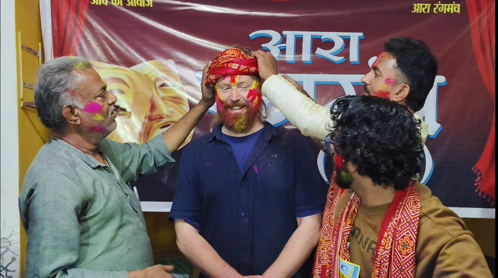 रंगमंच के कलाकारों ने विदेशी मेहमान माइकल येलो को दिखाई बिहार की होली
