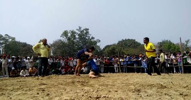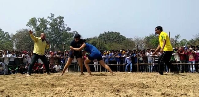 दंगल फिल्म आने के बाद कुश्ती के लिए इन दिनों युवाओं से लेकर लड़कियो में काफी क्रेज देखा जा रहा है. जिसका नमूना आज बिहार दिवस देखने को मिला जिसमे महिला कुश्ती के लिए कई प्रतिभागी भी शामिल हुए. जिसका उद्घाटन डीडीसी इनायत खान ने किया. इस महिला कुश्ती के दंगल को देखने के लिए लोगों की भीड़ प्रतियोगिता समाप्त होने तक लगी रही.