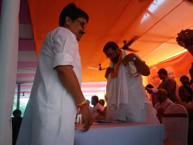 हालांकि कार्यक्रम तय समय से 3 घंटे देरी से शुरू हुआ, लेकिन दिलचस्प यह रहा कि राजद के के एक बड़े नेता और पूर्व कारामंत्री और गन्नामंत्री राघवेंद्र प्रताप सिंह ने भाजपा की सदस्यता ग्रहण की. इनके साथ ही जगदीशपुर के चर्चित नेता और पूर्व विधायक भाई दिनेश भी भाजपा में शमील हो गए. हालाँकि ये औपचारिकता कल ही पटना के कृष्ण मेमोरियल में यह पूरा हो गयी. लेकिन इसे आज सार्वजनिक मंच पर शेयर किया गया. बताते चलें कि राघवेंद्र प्रताप सिंह और उनके पिताजी बड़हरा से 6 बार विधायक के रूप में जीते हैं. उन्होंने भाजपा में शामिल होने का कारण ईमानदारों की पार्टी बताया. साथ ही उन्होंने कहा कि प्रधान मंत्री असली पठ्ठा हैं और देश को ऐसे ही व्यक्ति की जरूरत थी. उन्होंने वर्तमान सरकार को आड़े हाथ लेते लालू प्रसाद पर प्रहार करते हुए कहा कि जिस आदमी के पास रहने को घर नहीं था उसके पास आज देश के कई हिस्सों में घर है. अकूत सम्पति रखने वाले ने अपने बेटे-बेटियों के नाम पर सम्पति रखकर जो उन्हें आज फंसा दिया है वैसे लोगों को ज़रा भी शर्म नहीं है. उन्होंने कहा कि मैं ऐसे ब्यक्ति को कितने दिनों तक साथ देता रहा. अब उन्हें इस बात का अफ़सोस है. उन्होंने कहा कि मेरे इतने दिनों तक मंत्री रहने के बाद भी आप मेरे ईमानदारी पर विश्वास इसी से कर सकते हैं कि यदि मेरे अकाउंट में 15000 के बयाज 16000 रूपये निकल जाये तो मैं राजनीतिं से संन्यास ले लूंगा.