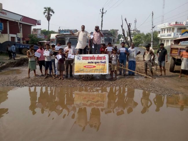 किया. बताते चलें कि गढ्ढे के कारण इस रास्ते पर पैदल भी चलना दूभर हो गया है.