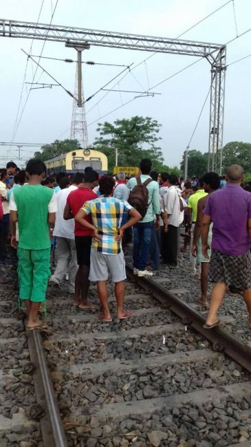 ग्रामीणों ने रेलवे ट्रैक पर पत्थर के बड़े-बड़े टुकड़े रख दिए और सीमेंट के बड़े-बड़े बिजली के खंभे रख कर विरोध प्रकट करना शुरू कर दिया. जिसकी वजह से डाउन लाइन पर फरक्का, पटना साहिब शटल ट्रेन तथा अप लाइन पर कई ट्रेनों को घंटो खड़ा रहना पड़ा. ग्रामीणों के गुस्से की वजह से काफी देर तक कोई भी अधिकारी घटनास्थथल पर नहीं पहुंचे.