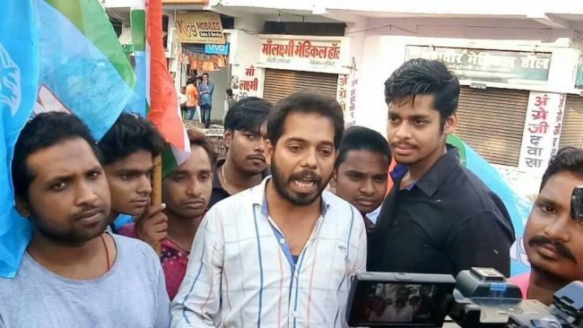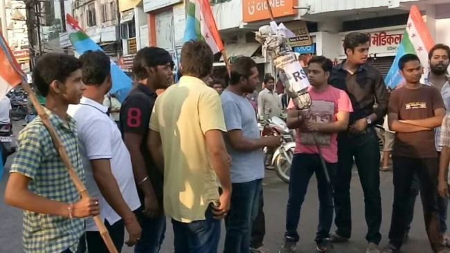 कांग्रेस पार्टी की छात्र इकाई NSUI ने भाजपा तथा RSS का आरा के शहीद भवन गोलम्बर पर पुतला दहन किया.