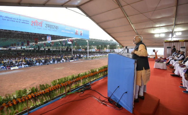 हमारे सोने पर सैनिक को शिकायत नहीं होती, लेकिन जागने के वक्त भी सोए रहते हैं, वह ठीक नहीं. सिर्फ सेना के जवान जागते रहें, ये उनके साथ अन्याय होगा. हमें भी जागने के समय जागना चाहिए. उस समय सोने का हमें कोई हक नहीं.सेना का सबसे बड़ा शस्त्र उसका मनोबल होता है. ये शस्त्र से नहीं आता, बल्कि सवा सौ करोड़ देशवासियों के उनके पीछे खड़े रहने से आता है.हमारे देश में 1962 के युद्ध के बाद लोग मिठाइयों के पैकेट देश के जवानों को भेजते थे.सेना बोलती नहीं, पराक्रम करती है. रोज मेरे बाल नोच लिए जाते थे कि मोदी सो रहा है, लेकिन हमारी सेना नहीं बोलती. हमारे रक्षा मंत्री भी नहीं बोलते. मध्य प्रदेश सरकार ने शौर्य स्माकर निर्माण किया. यह हम सभी के लिए तीर्थ क्षेत्र है.भारत मां को अपना परिवार बनाकर, अपनों को अकेले छोड़कर चल देने वाले सैनिकों का यह त्याग ‘छोटा त्याग’ नहीं.हम बचपन से माखन लाल चतुर्वेदी जी की कविता सुनते आए हैं कि ‘मुझे तोड़ लेना वनमाली! उस पथ पर देना तुम फेंक, मातृभूमि पर शीश चढ़ाने जिस पर जावें वीर अनेक’.हम जानते हैं हमारे देश के जवान पिछले कई दशकों से हर सरकार से वन रैंक-वन पेंशन की मांग कर रहे थे.हर सरकार ने बढि़या शब्दों में उनसे सिर्फ वादे किए.