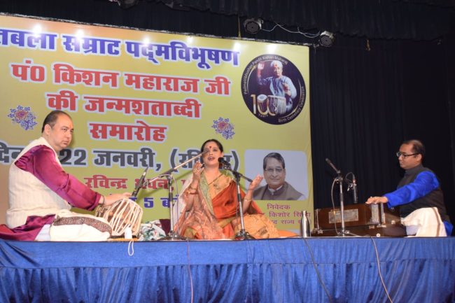 पं. किशन महाराज जन्म शताब्दी के अवसर पर शास्त्रीय संध्या आयोजित की गईं जिसमें देश की लब्ध प्रतिष्ठित शास्त्रीय गायिका विदुशी इन्द्राणी मुखर्जी का शास्त्रीय गायन(कोलकाता) के साथ मुंबई की ख्यातिप्राप्त वायलिन वादक नन्दनी शंकर ने कार्यक्रम प्रस्तुत किये। कार्यक्रम में कोलकाता के अभिषेक चटर्जी तबला (कोलकाता) पं. द्वैपायन राय, (कोलकाता) हारमोनियम पर संगत किया.