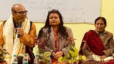 प्रांगण द्वारा आयोजित 37वां पाटलिपुत्र नाट्य महोत्सव के तीसरे दिन दो मंचीय 2 नुक्कड़ प्रस्तुतियों के साथ-साथ सुमन कुमार जी एवं स्थानीय कलाकार और दर्शकों के बीच खुली बातचीत हुई. केंद्रीय संगीत नाटक अकादमी दिल्ली के उप सचिव और वरिष्ठ रंगकर्मी सुमन कुमार ने कहा है कि रंगमंच हमारे जीवन संघर्ष, चुनौतियों और सम्भावनाओं को रचनात्मकता के साथ संप्रेषण का उपादान है जो जीवन दर्शन विशिष्टता प्रदान करता हैं. वे 37वें पाटलिपुत्र नाट्य महोत्सव के दौरान कालिदास रंगालय में ” नाटक पर चर्चा ” सत्र के दौरान पटना शहर के रंगकर्मियों से मुखातिब थे उन्होंने कहा कि बिहार सहित हिंदी पट्टी में रंगकर्मियों के लिए संभावनाओं के अनेक द्वार खुल रहे हैं . इसका लाभ बिहार के रंगकर्मियों को मिलने लगा है . कार्यक्रम में वरिष्ठ रंगकर्मी उषा वर्मा डॉ ध्रुव कुमार, नीलेश्वर मिश्रा, अभय सिन्हा, आशीष कुमार मिश्र, अभिषेक कुमार, सोमा चक्रवर्ती और मनीष महिवाल उपस्थित थे .