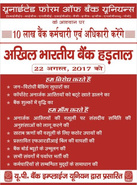 22 अगस्त को हड़ताल के बाद बैंककर्मी 15 सितंबर को दिल्ली में पार्लियामेंट के पास मोर्चा निकालेंगे और धरना देंगे, जिसमें देशभर के बैंककर्मी भाग लेंगे.