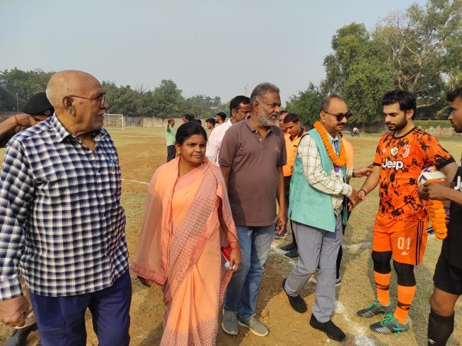 आरा 17 नवंबर. वीर कुंवर सिंह स्टेडियम आरा मे जिला फुटबॉल संघ, भोजपुर, आरा के तत्वधान में आयोजित जिला फुटबॉल लीग चैंपियनशिप 2022-23( राधा शरण सिंह कप) भोजपुर, आरा के तीसरे दिन का पहला मैच आरएफसी पड़रिया बनाम न्यू आजाद क्लब बगही के बीच खेला गया. जिसमें पहला गोल खेल के 16 मिनट में पड़रिया के सूर्यभान कुमार सिंह ने अपने टीम के लिए गोल किया दूसरा गोल खेल के 55 में मिनट में सूर्यभान सिंह ने अपने टीम के लिए किया इस तरह मैच समाप्ति के बाद आर एफ सी पड़रिया 2/0 से विजयी रहा. इस मैच के निर्णायक धनजी कुमार, राजकुमार, रमेश सिंह, और धर्मेश उपाध्याय थे. इस मैच के मुख्य अतिथि अपने जमाने के वरिष्ठ फुटबॉलर और लीग के पर्यवेक्षक लाल बहादुर लाल थे.