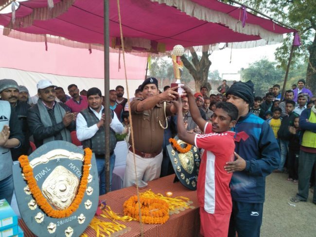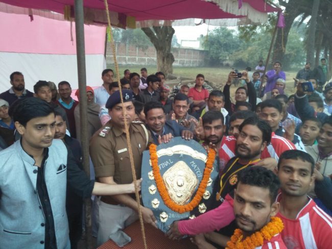 भभूआं की टीम ने फुटबॉल ट्रॉफी पर कब्जा जमाया