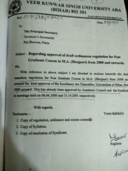 किया जैसा कुलपति ने बताया. लेकिन जब कुछ कागजात जो 2013 या उससे पहले और 2015 को राजभवन से आय थे, माँगा तो उन्होंने कहा कि कागज अभिजीत रखता है हम तो बस इस सब चीजों की जानकारी रखते हैं। पूछने पर की अभिजीत कहाँ है, पता चला वो आज नहीं आया है। डॉ ज़मिल को विवि के 26 साल का इतिहास तो ऐसे पता है जैसे ये यहाँ 30 सालों से काम कर रहे हों लेकिन अपने डेढ़ साल के कार्यकाल के अंदर कोर्ट को दिए अपने पत्र और एफडेविट में इन्होंने क्या लिखा है भोजपुरी विभाग के लिए ,ये महोदय को नहीं पता है. कागज हमें तो नहीं दिखाया,इन्होंने बहाना कर गए बोले के कागज़ देखने के बाद मैं बता पाऊंगा कि मैंने क्या लिखा,राजभवन से आये 2015 के पत्र के आलोक इन्होंने कोर्ट से इसे डिसमिस करने के लिए बोल कर अपनी वाहवाही लूट ली.