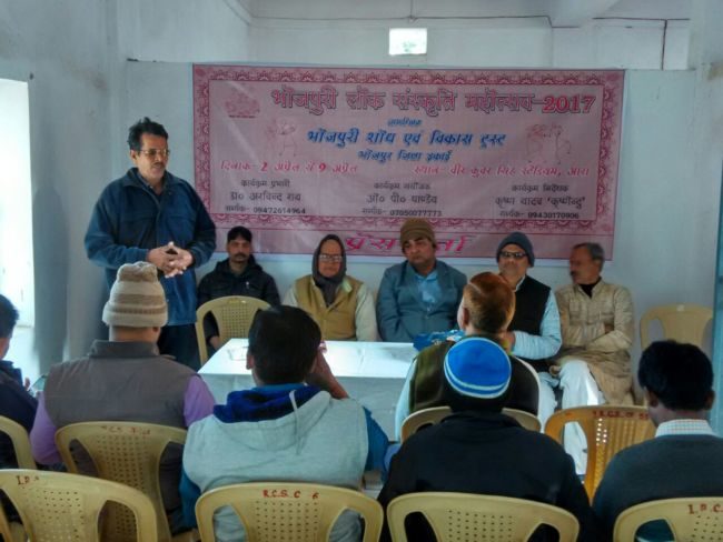 भोजपुरी लोक संस्कृति महोत्सव 2017 के आयोजन के लिए आज भोजपुरी विकास एवं शोध ट्रस्ट ने एक प्रेस कांफ्रेंस स्थानीय रेडक्रॉस के सभागार में आयोजित किया. पत्रकारों को संबोधित करते हुए आयोजन के निदेशक कृष्ण यादव कृष्णेन्दु ने कहा कि भोजपुरी के लुप्त हो रहे साहित्य से संस्कृति तक को समेटने के उद्देश्य से इसका आयोजन किया जा रहा है. उन्होंने भोजपुरी भाषा के लिए प्रयास निरंतर आंदोलन की चर्चा करते हुए कहा अब भोजपुरी के खान-पान से लेकर पहनावा तक इस महोत्सव में देखने को मिलेगा. कार्यक्रम प्रभारी डॉ अरविन्द राय ने भोजपुरी के कई शैलियों, लोकधुनों और लोकनृत्य की टोलियों के खोजने की बात कहते हुए कहा कि वो निरंतर दुर्लभ भोजपुरी के कलाकारों से संपर्क बनाए हुए हैं और ये सभी आयोजन का हिस्सा बनेंगे. कार्यक्रम के संयोजक ओ पी पाण्डेय ने मीडिया को ब्रीफ करते हुए आयोजन के उद्देश्य और स्वरूप पर प्रकाश डाला. उन्होंने कहा कि इस आयोजन का मुख्य उद्देश्य वैसे युवा पीढ़ी से भोजपुरी का दर्शन कराना है जो भोजपुरी का मतलब सिर्फ अश्लील ही समझते हैं.