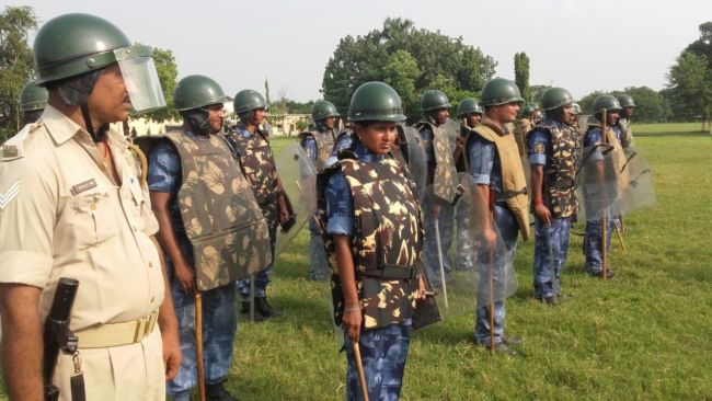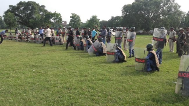 हुड़दंगियों से निपटने के लिए भोजपुर पुलिस का मॉक ड्रिल