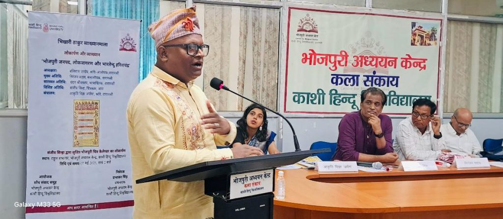 वाराणसी।। काशी हिंदू विश्वविद्यालय के भोजपुरी अध्ययन केंद्र में 7 मई को ‘भोजपुरी जनपद, लोकजागरण और भारतेंदु हरिश्चंद्र’ विषय पर एक विशेष व्याख्यान और ‘भोजपुरिया कैलेंडर’ का लोकार्पण समारोह आयोजित हुआ यह कार्यक्रम भिखारी ठाकुर व्याख्यानमाला की श्रृंखला के तहत आयोजित किया गया था.