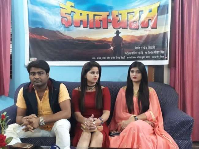 फ़िल्म के कहानी के बारे में उन्होंने बताया कि यह एक पारिवारिक फ़िल्म है. यह फ़िल्म दो भाइयों की कहानी है जिसमे एक भाइ दूसरे के बहकावे में आकर घर में कलह पैदा कर देते हैं . फ़िल्म साफ सुथरी है जिसे लोग अपने परिवार के साथ बैठ कर देख सकेंगे. फ़िल्म के लोकशन के बारे में उन्होंने बताया कि फ़िल्म की शूटिंग बिहार के सीतामढ़ी व मुम्बई में शूट किया जाएगा . मौके पर उपस्थित फ़िल्म में बतौर अभिनेता पहले सुर संग्राम के विजेता आलोक कुमार ने पत्रकारों से रूबरू होते हुए बताया कि बन रही भोजपुरी फ़िल्म ईमान-धरम एक सामाजिक व् पारिवारिक फ़िल्म है जो पूरी तरह अश्लीलता मुक्त होगी . आप सभी लोग इस फ़िल्म को सपरिवार एक साथ बैठकर सिनेमा हॉल में देख सकते हैं . इस फ़िल्म में करीब 10 गीत हैं जो काफी अच्छे हैं.