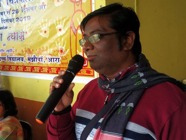 चित्रकार राकेश कुमार दिवाकर ने अपने सम्बोधन में लोककला और शास्त्रीय कला के बीच के अंतर को बताया और भोजपुरी लोककला की विशेषताओं को रेखांकित किया.