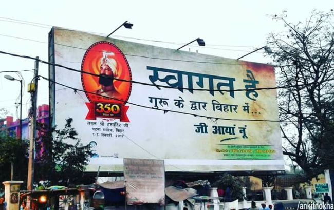 गुरू के द्वार बिहार में आपका स्वागत है ,गुरु पर्व श्री गुरु गोविन्द जी के 350 प्रकाश पर्व की लख-लख बधाइयों वाले सन्देश लिए हजारों बड़े छोटे होर्डिंग लगाए गए है ,रास्तों की जानकारी देते छोटे साइन बोर्ड भी लोगों के लिए सहायक बन रहे हैं .