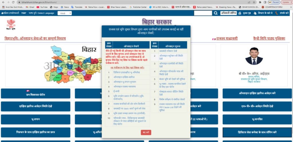 पटना : राज्य के राजस्व एवं भूमि सुधार विभाग द्वारा संचालित बिहारभूमि पोर्टल की सभी ऑनलाइन सेवाएं 15 फरवरी दिन रविवार को निर्धारित सर्वर मेंटेनेंस के कारण अस्थायी रूप से बाधित रहेंगी. विभाग की ओर से जारी महत्वपूर्ण सूचना के अनुसार पोर्टल की सेवाएं प्रातः 10:00 बजे से सायं 6:00 बजे तक उपलब्ध नहीं रहेंगी.