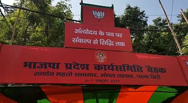 पटना में आज से बीजेपी कार्यसमिति की 2 दिवसीय बैठक शुरू हुई. पटना सिटी स्थित रामदेव महतो सामुदायिक भवन में आयोजित इस बैठक में बिहार बीजेपी के सभी दिग्गज, बिहार से जुड़े केन्द्रीय मंत्री और सांसद भाग ले रहे हैं.