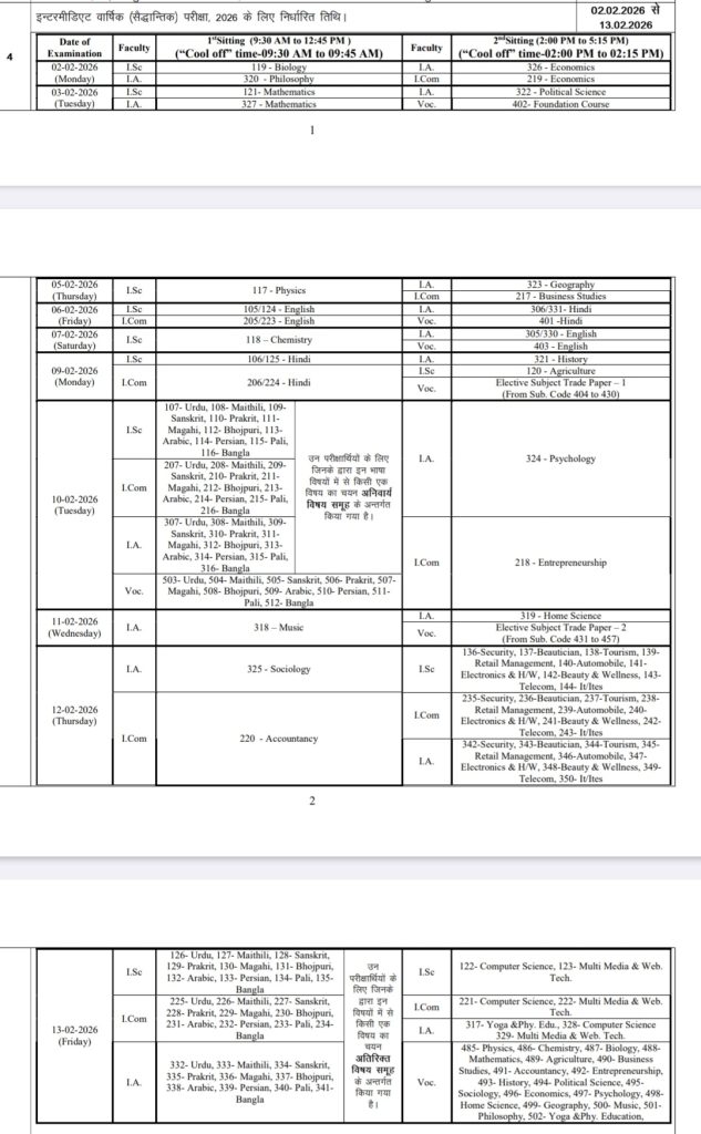 पटना।। बिहार बोर्ड ने 2026 का परीक्षा कैलेंडर जारी कर दिया है. मुख्यमंत्री नीतीश कुमार ने पिछले दिनों सभी बोर्ड और आयोग से अगले साल का शेड्यूल जारी करने का आदेश