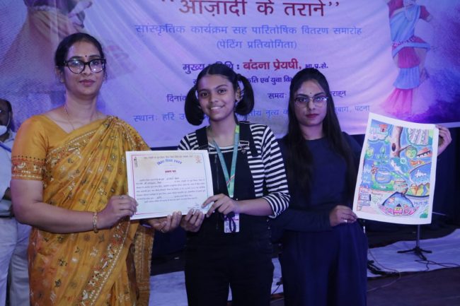 लोयला हाई स्कूल के 11 बच्चों में से 5 छात्रों ने सर्वश्रेष्ठ पुरस्कार जीते हैं जिनमें शम्स अली ,ओजम विकास ने दोनों अपने वर्ग में प्रथम आए.सताक्षी मिश्र को तृतीय स्थान मिला और स्पंदन बोस के साथ अपने वर्ग में उदिता आर्य ने सांत्वना पुरस्कार प्राप्त किया. लोयला हाई स्कूल पटना की शिक्षिका पूजा ने बताया कि बच्चों में कुछ करने की ललक बढ़ गई है और वे ऐसे आयोजनों में साफ़ दिखता है,टॉपिक पर काम कर बच्चे बहुत खुश होते हैं. बच्चों ने वाकई अच्छा काम किया है. कला, संस्कृति एवं युवा विभाग की सचिव वंदना प्रेयसी और ललित कला अकादमी के सचिव तारिक इकबाल ने पुरस्कार विजेताओं को प्रतिभागियों को पुरस्कार राशि एवं प्रमाण पत्र प्रदान किए. पुरस्कार वितरण के साथ-साथ सभी प्रतिभागी को सहभागिता प्रमाण पत्र के अलावे सभी को 300/- (तीन सौ रुपए) यात्रा भत्ता भी प्रदान किए गये. निर्णायकों में राजधानी के वरीय चित्रकार दिनेश कुमार ,नम्रता कुमारी ,स्मिता परासर और जीतेंद्र मोहन प्रमुख थे.