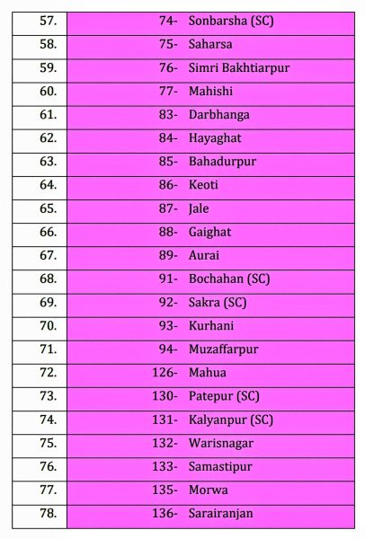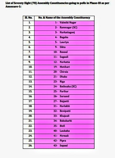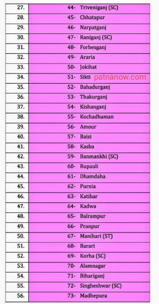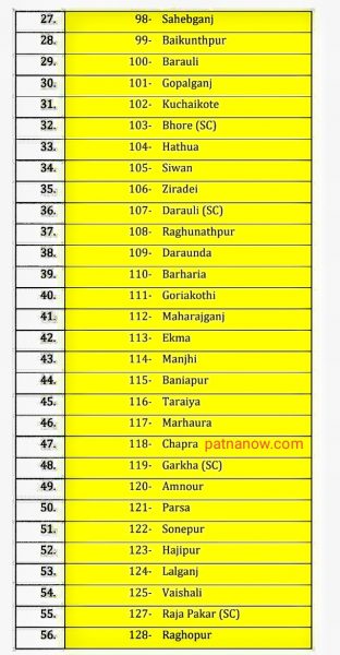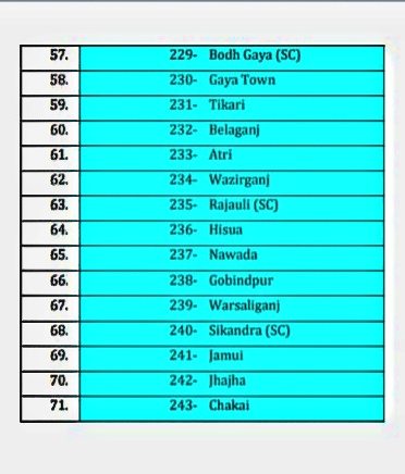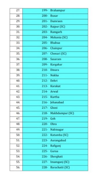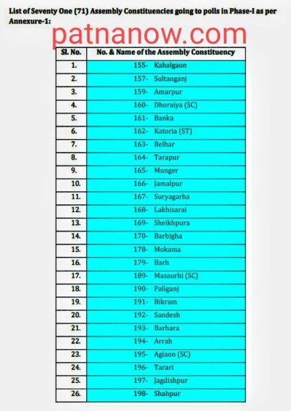 फर्स्ट फेज 28 अक्टूबर 2020 (71 विधानसभा सीट)
