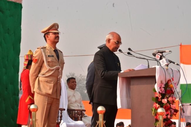 समारोह को संबोधित करते हुए राज्यपाल ने कहा कि -राज्य में बिजली की स्थिति को सुधारने का काम राज्य सरकार ने चुनौती मानकर स्वीकार किया है और इसमें सुधार हुआ है. उन्होंने कहा कि बिहार में पूर्ण मद्य-निषेध लागू कर सामाजिक परिवर्तन की बुनियाद रखी गई है. राज्यपाल कोविन्द ने कहा कि विगत् 21 जनवरी 2017 को 3 करोड़ से अधिक बिहार वासियों ने लगभग 11 हजार 400 किलोमीटर लंबी अभूतपूर्व एवं ऐतिहासिक राज्य व्यापी मानव-श्रृंखला बनाकर शराबबंदी एवं नशामुक्ति के पक्ष में अपने संकल्प को प्रकट किया है. उन्होंने गुरू गोबिन्द सिंह जी महाराज के 350वें प्रकाशपर्व के सफल आयोजन को अविस्मरणीय बताते हुए कहा कि बापू के ‘चम्पारण सत्याग्रह’ की ऐतिहासिक स्मृति का सौंवा साल ‘चम्पारण सत्याग्रह शताब्दी समारोह’ के रूप में मनाया जायेगा और बापू के संदेशों को घर-घर पहुँचाया जायेगा. राज्यपाल ने बिहार वासियों को समाज में सद्भाव और भाईचारा का वातावरण बनाए रखने का आह्वान किया, ताकि बिहार, विकास के शिखर तक पहुँच सके.